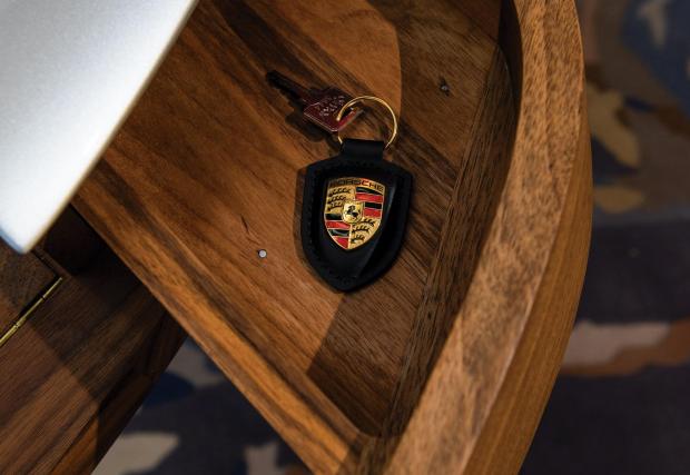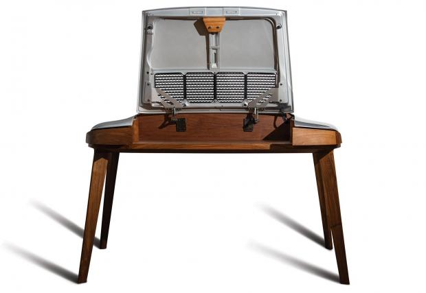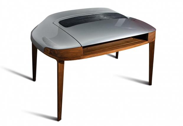 Стилният мебелен образец е изработен от американски орех и е „снабдено“ с оригинални панели от класическо Porsche 911, боядисани в ‘Arctic Silver’. Бюрото е дело на фирмата 3 GJB 17, а ориентировъчната му цена е 30 хил. долара.