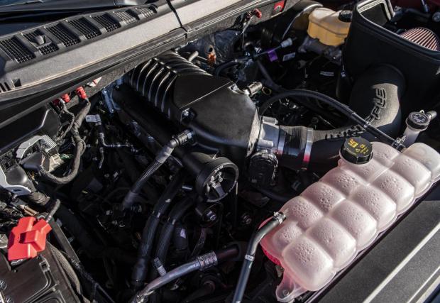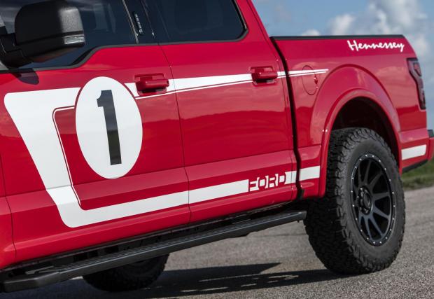 „Камионът“ се задвижва от 5-литровия V8, подпомаган от 2,9-литров механичен компресор, променен всмукателен колектор, горивна система и още няколко неща. В резултат моторът генерира 758 к.с. и при 7000 об/мин и 895 Нм, като „мощността на задните колела е 570 к.с“, казват от Hennessey.