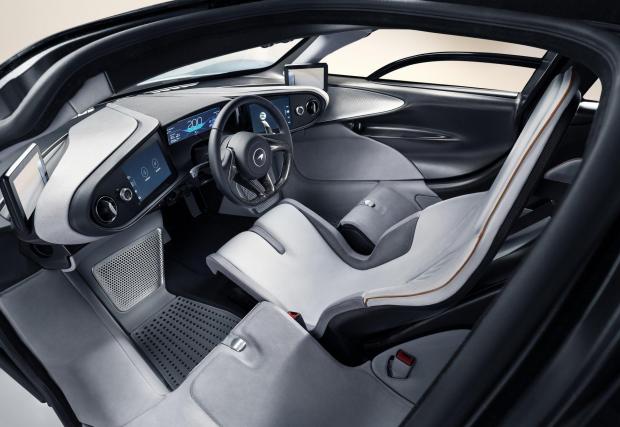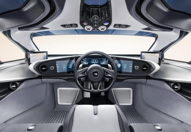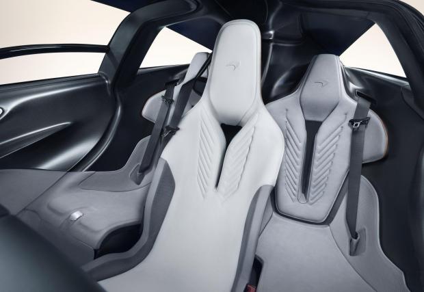 Триместното разположение копира това на McLaren F1, но интериорът е далеч по-GT, отколкото в изпълнения с превключватели и състезателен дух легендарен модел от 90-те.
