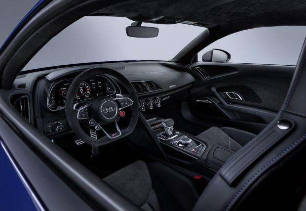 За сезон 2019 Audi обнови R8 с по-голяма предна решетка, повече остри ъгли и ново покритие на двигателя, което може да поръчате от пластмаса или въглеродни влакна. Промените в интериора са ограничени до нови цветове, контрастиращи шевове и някои нови акценти от олекотени материали. Нищо особено дотук.