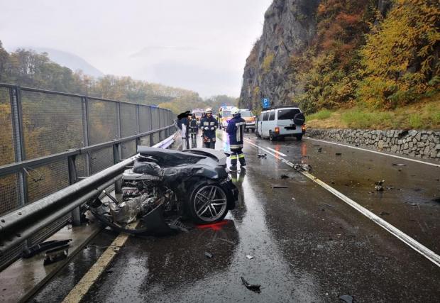 Съзнаваме, че заглавието е в стил някоя жълта медия, но в същото време не можем да не изпитваме истинска възхита от изобретателността на шофьорите в Северна Италия да използват миниван вместо гилотина. Бързаме да уточним, че шофьорите и на двете коли са се отървали със съвсем дребни наранявания и са откарани в болница само за задължителните след такава катастрофа изследвания. Действието се развива в района на селцето Кастелбело в Алпите. Властите са се нуждаели от два часа, за да почистят пътя, което австрийските и италиански медии отчитат като бавна реакция, а ние в България бихме могли да определим като отлична реакция предвид милионите частици от R8, включително доста течности, видими по асфалта.