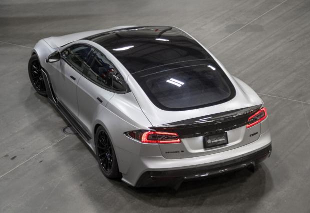 Най-новият им проект е озаглавен Unplugged S-APEX и е базиран на Tesla Model S P100D. Американците са преоблекли супер електричката с доста карбонови детайли, общо 19 парчета, като сега Model S е с 80 мм по-широк, за да прибере и по-широките полуслукове.