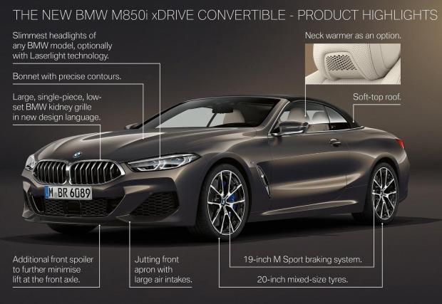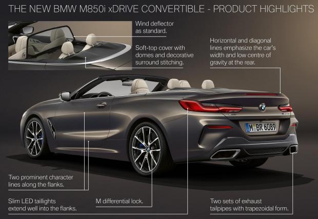 BMW Серия 8 Кабриолет (G14) остава вярно на традициите и дебютира с мек гюрук. Техническата база на колата е идентична тази на красивото купе (G15), което видяхме през юни, като моделът излиза и в същите модификации: М850i xDrive и 840d xDrive.