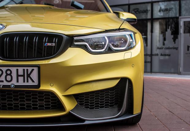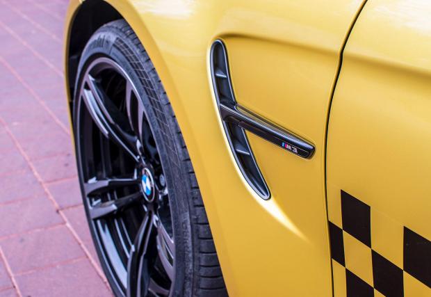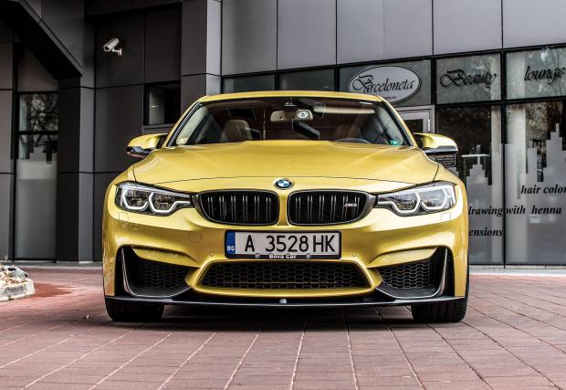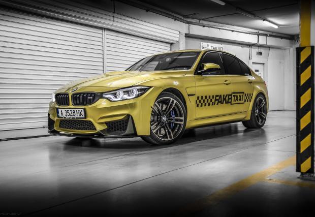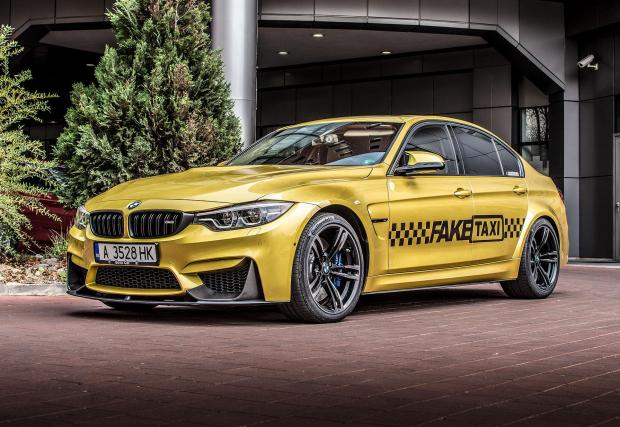 Перфектно чиста, в ‘Austin Yellow’, с допълнителни карбонови елементи M Performance (но не пакета) и с нескромни лепенки ‘Fake Taxi’ от двете страни... Няма как да пропуснете това прекрасно BMW M3 F80, нямаше как и ние да пропуснем възможността да го караме.