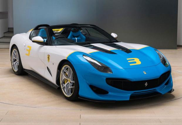 Ferrari SP3JC е поредният уникат на марката и е базиран на F12 tdf. Което означава, че под предния капак, който има и прозрачни елементи, работи 6,3-литровият V12 със 780 коня и 705 Нм.