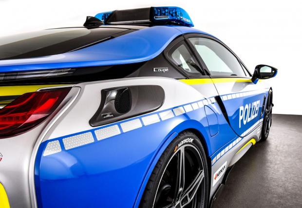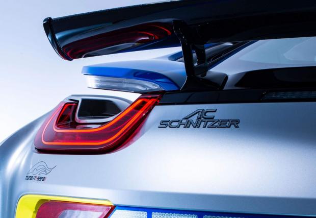 В Германия постепенно се превърна в традиция всяка година да бъде избирана една тунинг компания, която да направи полицейска кола за кампанията “Tune it! Safe!” в борба с незаконните и опасни тунинг изпълнения. Този път честта се падна на AC Schnitzer. Тунинг ателието е избрало за целта BMW i8. Купето е свалено с 20 мм и е получило нови 21-инчови олекотени колела AC1, спестяващи 4,4 кг на джанта. Аеродинамичните промени са изцяло от карбон - това важи за всички спойлери и за изградения от три части заден дифузьор.