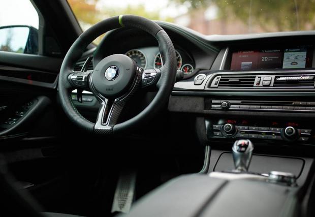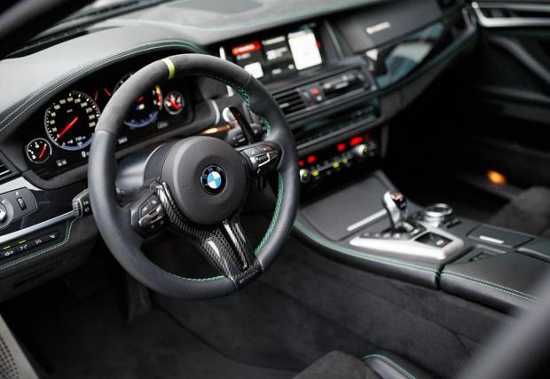 Интериорът също е приведен в благоприличен вид за посрещането на новите коне - с помощта на алкантара, обсипана с ярки зелени шевове. iDrive пък е взет от актуалната Серия 5. Франкенщайн или успешен тунинг пакет!? Оставяме на вас!