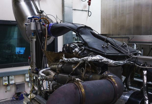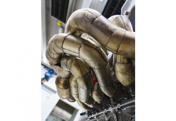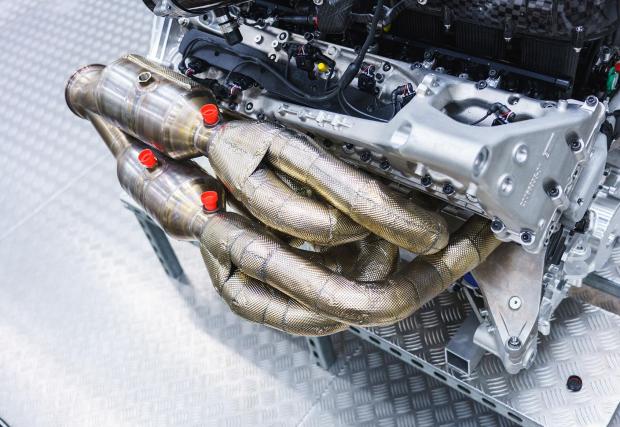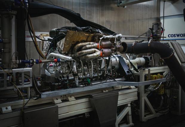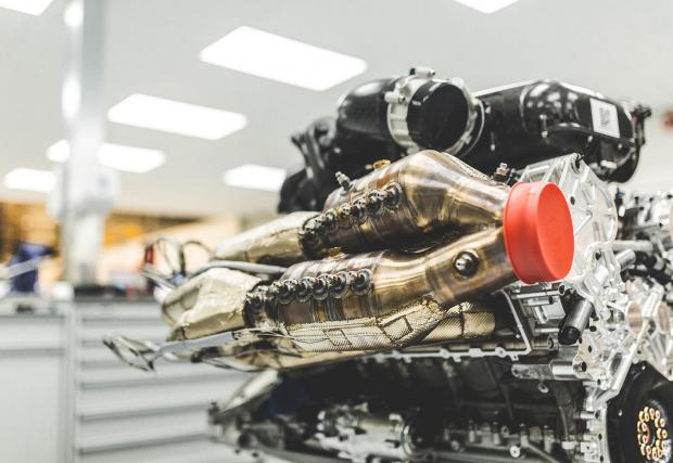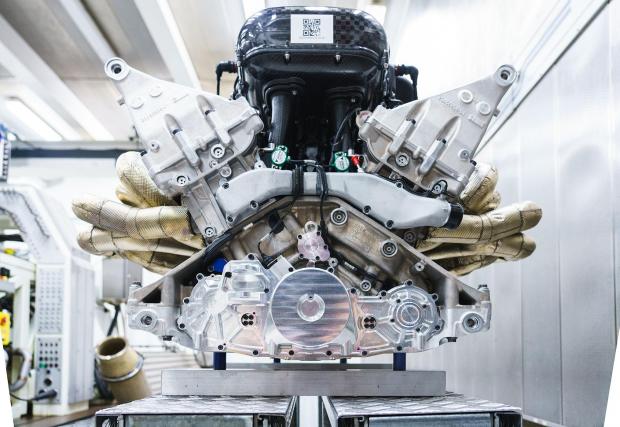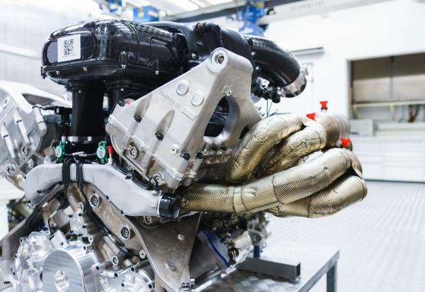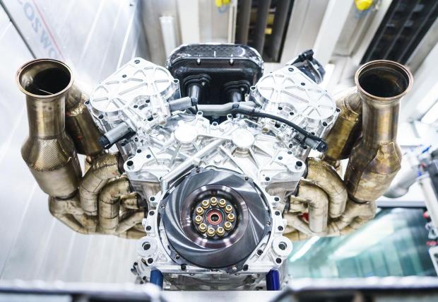 Агрегатът е с ъгъл от 65° между цилиндрите, тежи 205 кг (коляновият вал е на половина по-лек от този в мотора на Aston Martin One-77), а максималната мощност се достига при 10 500 об/мин. Максималният въртящ момент е 740 Нм и идва при 7000 об/мин. Чуйте го!