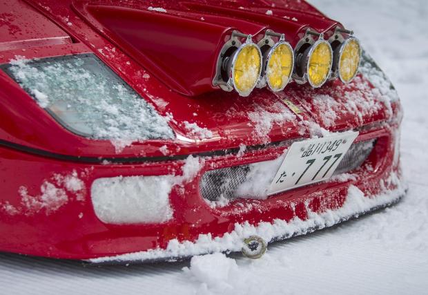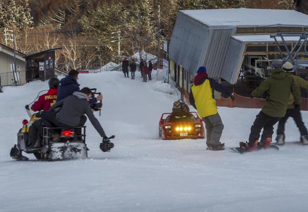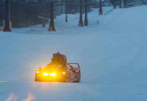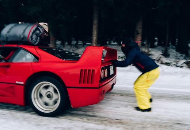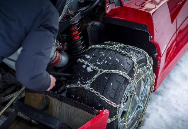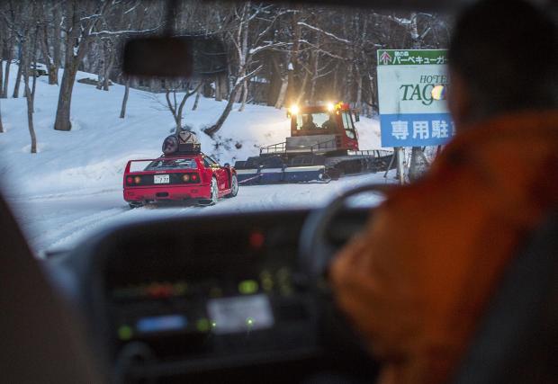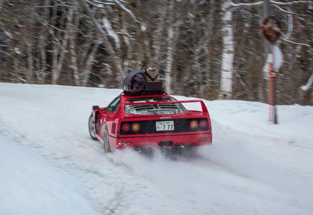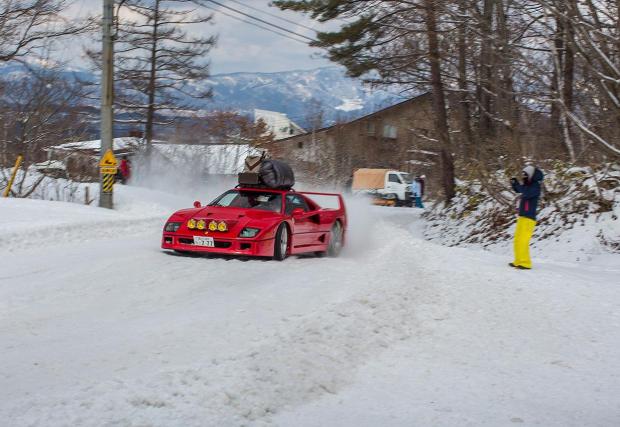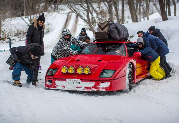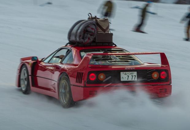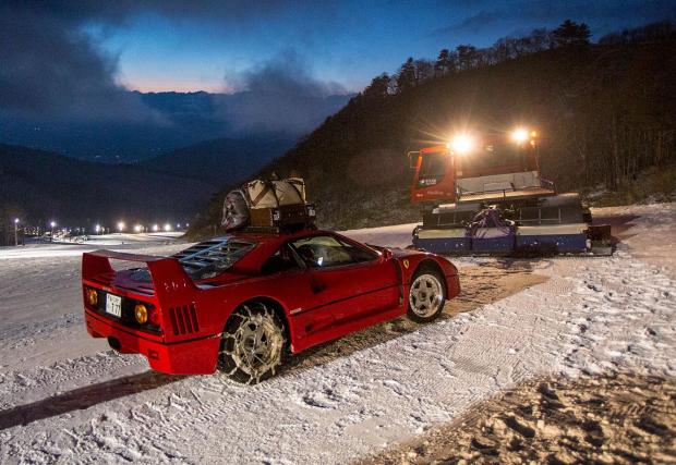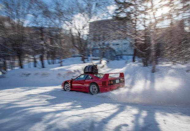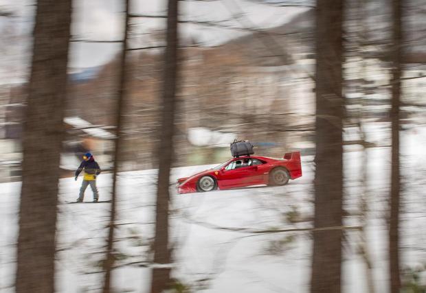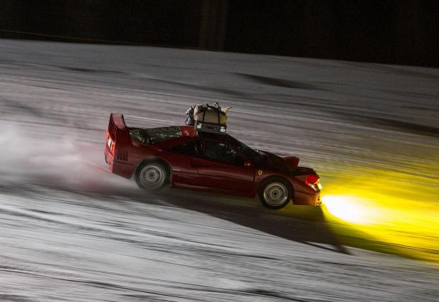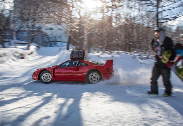 Ferrari F40 дрифти с вериги за сняг. На сняг. Човекът отива на пикник на ски писта... Видео!