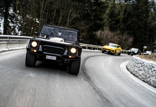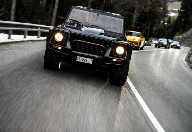 Както ще забележите от ефектната галерия, към кавалкадата от Urus-и се е присъединил изключително добре реставриран LM002. Макар да не може да се похвали с 650-те конски сили и 850 Нм на Urus, дядото на всички кросоувъри всъщност е единственият V12 в конвоя и от снимките съдим, че няма повод да се срамува. 5,2-литровият звяр е в отлична форма въпреки възрастта си от близо 30 години.