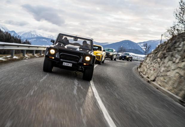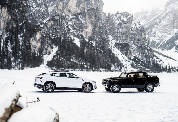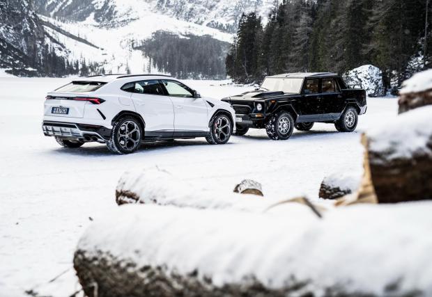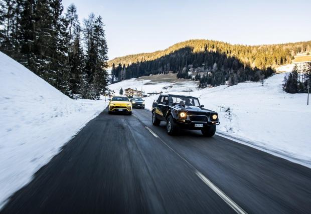 Коледната галерия на Lambo включва кавалкада от Urus и един много специален LM002 в Алпите