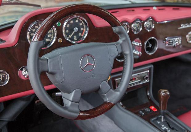 Колата от снимките е точно такава. Тя е модифицирана от AMG по поръчка на… султана на Бруней. Немците правят въпросната трансплантация, поставят карбонови кори под мотора, от карбон е и кожуха на перката и радиатора, а купето укрепват с допълнителна тръбна рама. Скоростите? Четиристепенния автоматик W4A, способен да предава 580-те Нм на 6-литровия мотор без проблем. AMG подменят и задното окачване с компоненти от R129 и поставят спирачки от W124. Отпред пък закачат дискове и апарати от C 36 AMG. Мощността на колата е 380 к.с., а максималната скорост е ограничена на 250 км/ч.