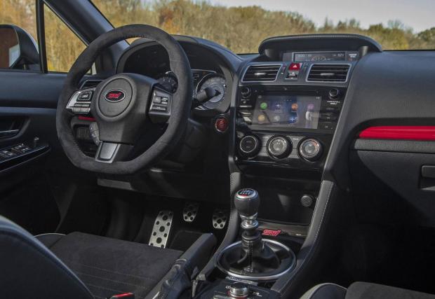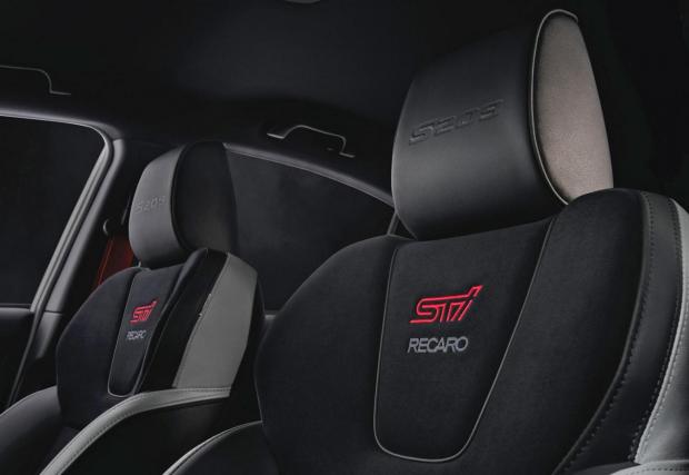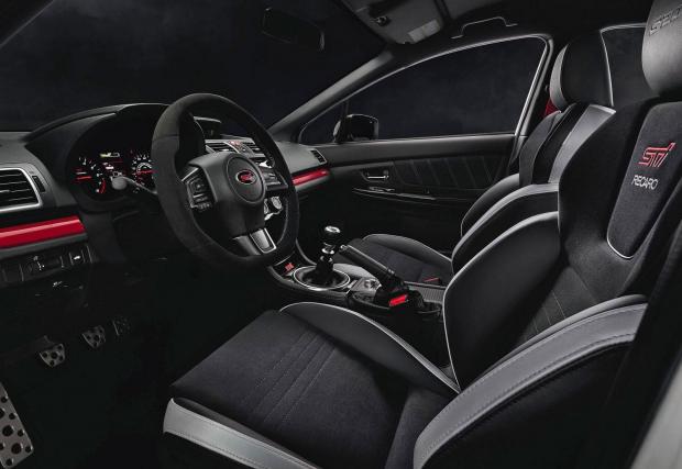 През супер яките 19x9 ковани BBS-ки се виждат и мощните спирачки: монолитни Brembo апарати с 6 бутала отпред и с 2 отзад. По-така STI-ката е обута в Dunlop® SP Sport Maxx® GT600А, отвън правят впечатление и каробновият таван и (най-вече) заден спойлер, както и четирите ауспухови накрайника: неръждаема стомана и диаметър 101 мм в края. Вътре? Готини Recaro седалки, обръч на волана в алкантара и акценти в червено.