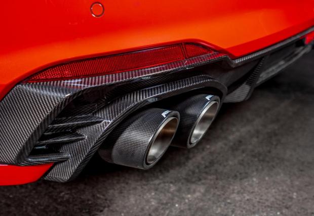 Ако вече сте разгледали галерията над този текст, то би било излишно да казваме, че всяка промяна по колата е замесена с богата доза въглеродни влакна - сплитера, решетката, задното крило, дори лоста на 8-степенната автоматична скоростна кутия.