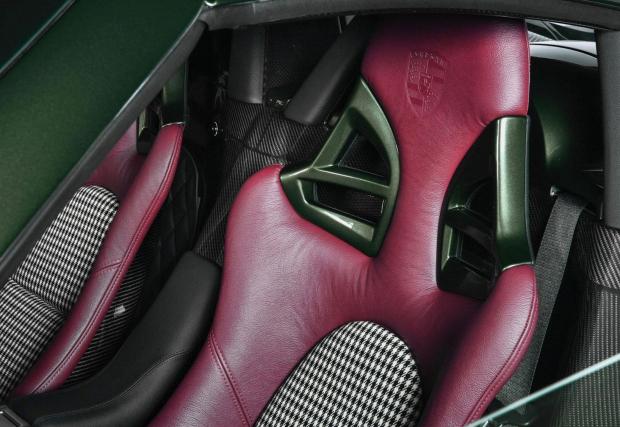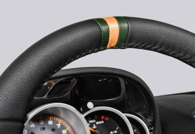 Интериорът е не по-малко впечатляващ. Седалки тапицирани с вишнева кожа/текстил, вторият в якия десен ‘houndstooth’, воланът вече е с централен маркер, а ламелите на вентилационните отвори също са… покрити с кожа. Не е ясно колко пари е струвало на собственика това хипердетайлно възстановяване/модифициране, но сумата със сигурност е повече от цената на ново 911 Turbo. Което не е лоша инвестиция, като се има предвид, че Carrera GT е произведена само 1270 пъти, а запазените екземпляри сменят собствениците си за по около 1,5 млн. лева.