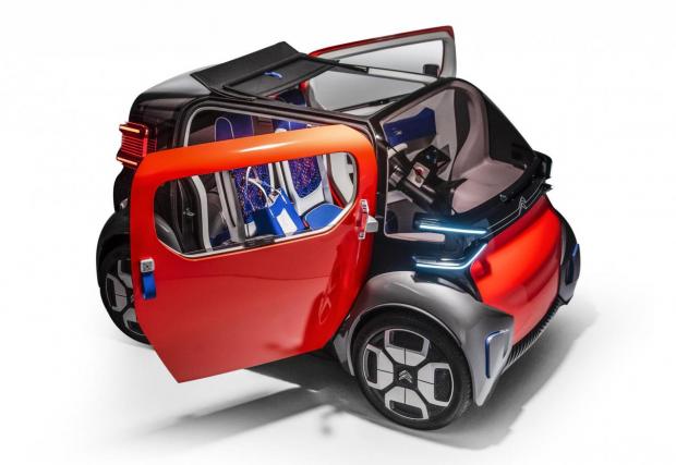 Citroen Ami One използва една и съща врата от двете страни. Има скоростомер, фарове и чистачки. И нищо повече. И се управлява от хора!