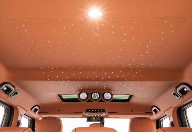 Друго? Ами, вижте колата. Черният колос търкаля 23-инчови колела (серийно 21 от AMG или опционални 22), като излъчването на бодикита е в унисон с името Widestar. По автомобила има и доста фалшиви решетки, като тази на отвора на капака, зад предните калници и пред и зад задните. Поне спойлера над задния капак е истински, както и карбонът по кутията за резервната гума. Вътре? Супер лукс, както може да предположите.