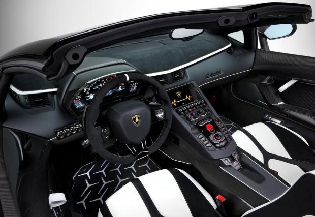 SVJ инициалите идват от ‘Super Veloce’ и ‘Jota’, като автомобилът е с едва 50 кг по-тежък (1525 кг) от купе версията на най-мощният Aventador. Покривът е съставен от два панела, изработени от карбон, всеки с маса от под 6 кг и махащ се чрез „бързи“ закопчалки.