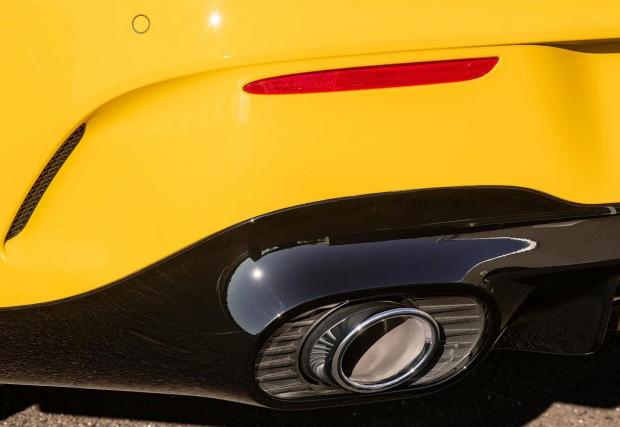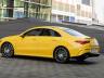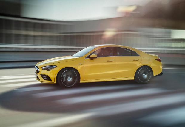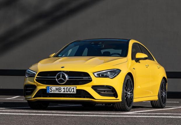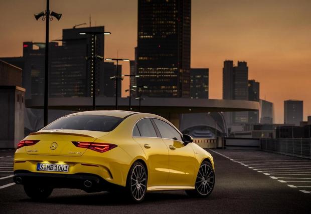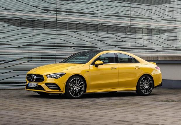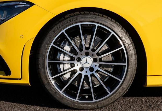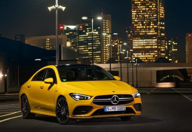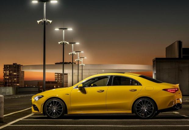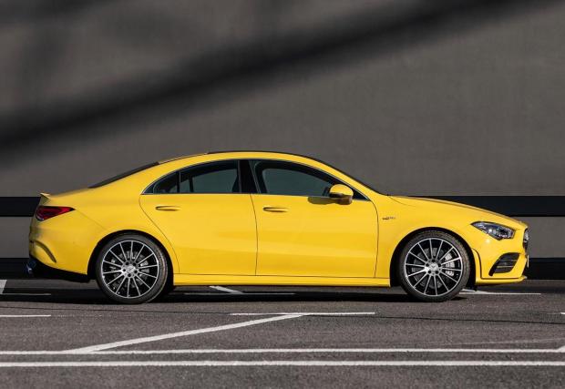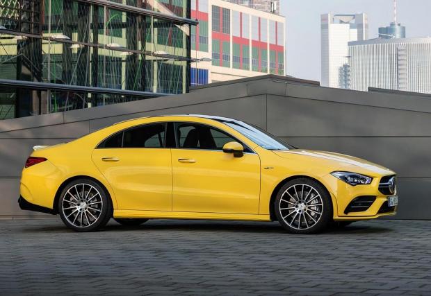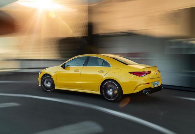 Визията също е любопитна. Mercedes засега показва само жълт екземпляр от спортния седан и цветът определено ни допада много. В сравнение с обикновен CLA, AMG 35 вариантът идва с допълнителен лип за предната броня, по-изразителен дифузер отзад и два големи кръгли накрайника на изпускателната система. Стандартното оборудване включва 18-цолови колела, но можете да доплатите и за 19-ки.
