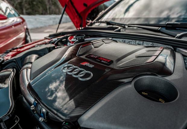 До него стои най-новото RS4 Avant, тук във вариант с 530 к.с. и 690 Нм от своя 2,9-литров битурбо V6. Повече за колата ще откриете тук.