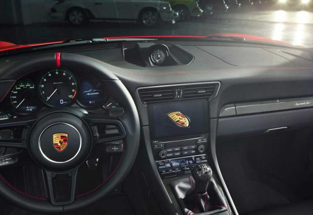 Правещият дебюта си в Ню Йорк автомобил се базира на 911 GT3 и използва същото хардкор окачване. Формата на купето е класически спийдстър, а сгъваемият покрив се управлява на ръка. Това е не просто old school, а спомага и за намаляване на общото тегло на спортната кола – същото правят и карбоновите калници и капак на багажника.