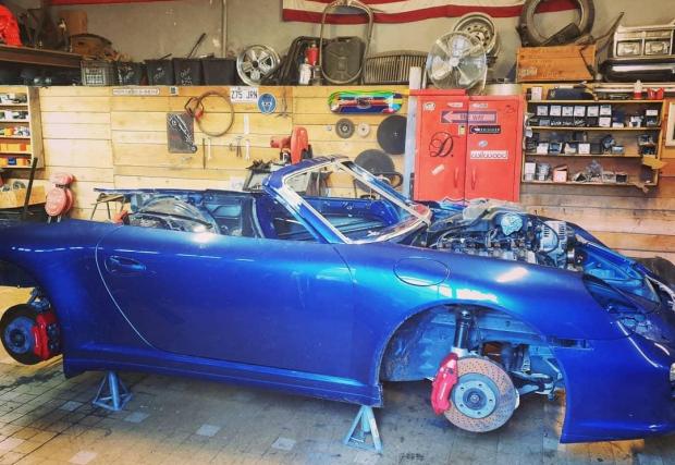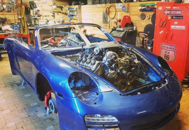 Тук говорим за проект на тунинг майсторите от Danton Arts Kustoms, които махат 6-цилиндровия боксер на Porsche 911 от поколение 997 (кабрио версия), за да поставят V8 HEMI мотор... и то върху предната ос. Прочетете това изречение още веднъж, идеята е скандална.
