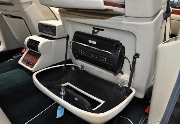 Често по обяви срещаме термина „всички екстри“. Тук може би той важи с пълна сила – налице са напълно електрически предни и задни седалки с масажна функция, шибидах, хладилник, два телефона, навигационна система, телевизор, регулируемо окачване и още куп други. Макар и на километража да виждаме цифрата от близо 107 500 километра, по нищо не можем да различим автомобила от чисто ново състояние.