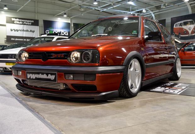 Боядисаният в бордо 1991 VW Golf MkII е страхотен! Няколко пъти се връщахме до колата, за да попием още от детайлите. Мощността му е 250 к.с., но тя не е толкова важна, колкото екстремното внимание към въпросните детайли. Оранжевият 2009 Passat B6 също е супер впечатляващ! Не бяхме виждали толкова изпипан автомобил от това поколение, както и жълтата Bora Combi с джанти от Porsche Carrera 997.