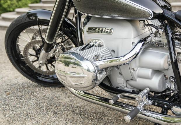 Цветовата схема е класическа за моторите на BMW от 60-те, с капковиден резервоар, нанесени на ръка декоративни линии и колела със спици. Предното е с размер 21-инча, отзад е с 18-инчов диаметър, а гумите са Metzeler. Фарът също е интересен детайл: стъклото му е оформено с U-графики, както е било едно време, но зад него работи LED техника. Сърцето? Новият (все още прототип) 2-цилиндров боксерен двигател с обем 1800 куб. см и въздушно-маслено охлаждане. От BMW не споменават техническите характеристики, но като имаме предвид, че актуалният агрегат на марката от серията R 1250 генерира 136 к.с. и 143 Нм, от тази машина очакваме мощност от около 180 коня (колкото на Triumph Rocket III TFC) и максимален въртящ момент от около 200 Нм.