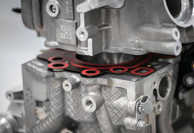 Турбината също е с нова конструкция. Тя е от ‘twin-scroll’ тип, като освен това роторът вече е окачен на сачмени лагери, характеризиращи се с по-ниско съпротивление при въртете. Въртене, което достига скорости от 169 000 об/мин и което става по-рязко. Иначе казано, турбо дупката е намалена значително. Компресорът е снабден и с електронно контролирана изпускателна клапа. При базовата версия той нагнетява въздуха с 1,9 бара, а в S версията – с 2,1.