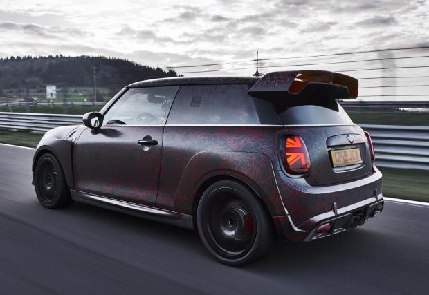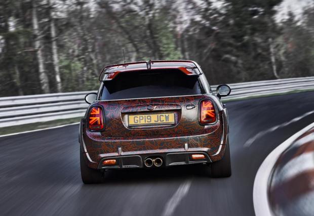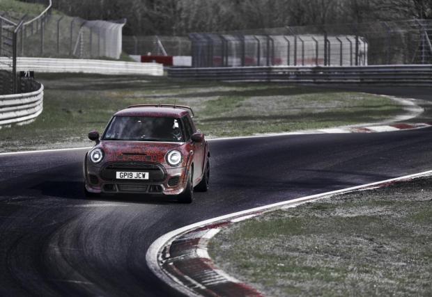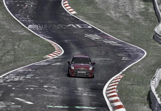 Въпросният се използва в момента, за да бъдат обезсърчени папараците, докато новото MINI GP препуска по “Ринга” в търсене на последни фини настройки. Засега най-доброто му време е 7:56, като инженерите смятат, че е възможно да се заличат още поне три секунди, с което третото поколение на модела ще е взело преднина от половин минута пред предшественика си, завъртащ Зеления ад за 8:23 минути.