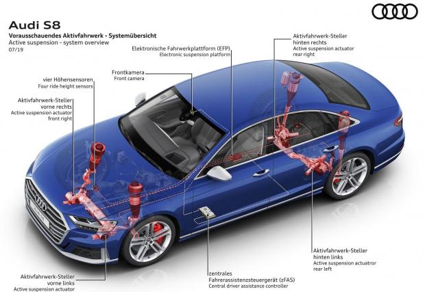 Друго? Новата топ S-ка идва с quattro, завиващи задни колела, спортен диференциал и активно окачване. Нова функция на последното е повдигането на колата с 50 мм, при издърпване на дръжката, за да може човекът да се плъзне вътре изгаряйки по-малко калории. Също така системата, която работи с въздушни елементи, електрически актуатори и камера, следяща пътя, намалява наклоняването на купето в завой до 2,5 градуса при 5 градуса със стандартно окачване.