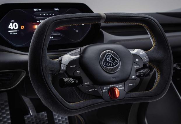 От чисто прагматична гледна точка изненади също не липсват. Пробегът с едно зареждане е около 400 километра, а Lotus разполага със система за зареждане на батериите в рамките на само девет минути. Разбира се, на този етап тя не функционира, тъй като изисква зарядна станция с мощност 800 кВ. Най-мощните съществуващи колонки са с мощност 350 кВ, които са достатъчни за зареждане на 80% от енергията за само 12 минути.