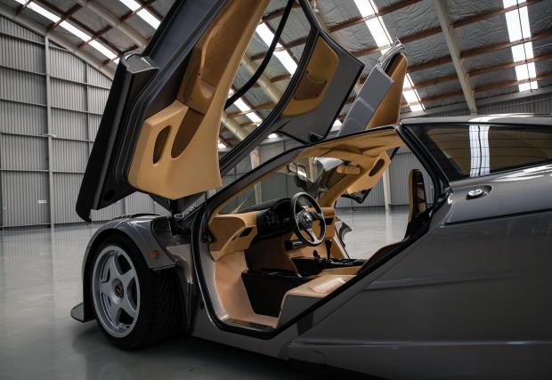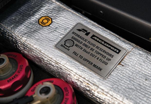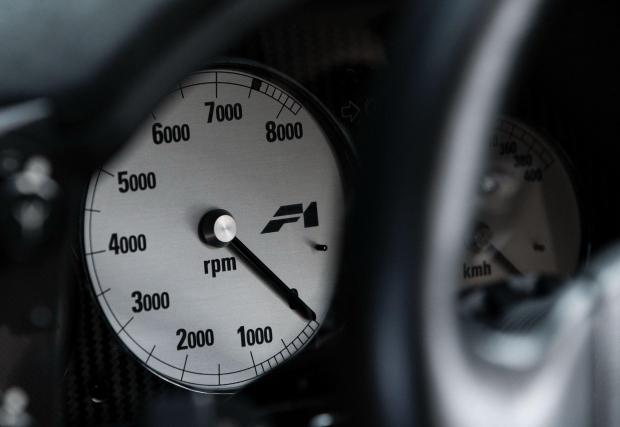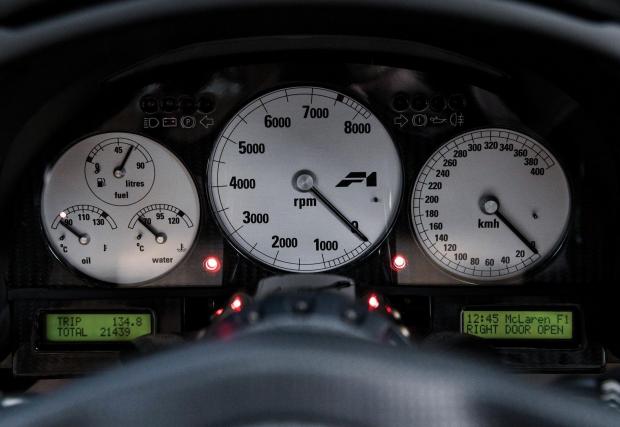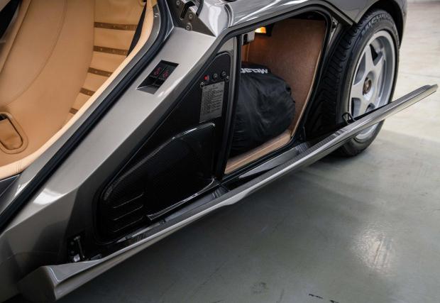 От този момент каросерията е в сивия цвят, който виждате на снимките, а интериорът е претапициран в бежова кожа и кафява алкантара. И това е може би най-интересното на конкретния McLaren F1 - състезателната техника е съчетана с интериора на шосейните коли - включително с подсилен климатик и дори аудио система.