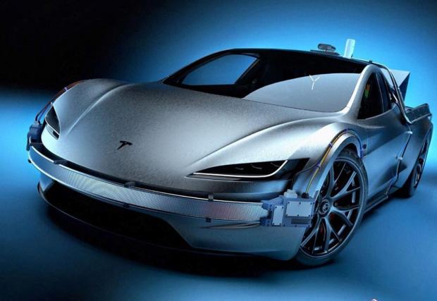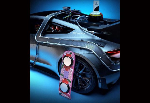 Ето как ще изглежда Tesla Roadster с реактивните си двигатели. Ховърбордът влиза в комплекта...