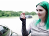Колите на Tesla предлагат няколко начина за отключване - със стандартно дистанционно, с карта, с приложение за телефон. За американката Ейми DD (Amie DD, https://www.amiedd.com/) те не са достатъчни. Дамата със зелена коса от снимките решава да имплантира RFID чипа за отключване на колата в ръката си. Между другото, това не е първият ѝ чип - тя има също имплант, с който отключва дома си и още един, който действа като своеобразен биологичен QR код и е линк към сайта ѝ.