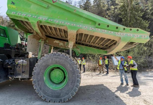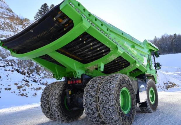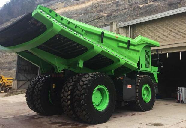 Историята е малко по-дълга. Чудовището използва гуми, които вероятно струват повече от цялата ви кола и със сигурност са по-големи от човек. И има 9500 Нм, така че навсякъде се движи с вериги на задните задвижващи колела, за да намери сцепление, когато е лишен от товара си. Работното му място е мина в Бийл, Швейцария, където Elektro Dumper товари 65 тона руда и тръгва по лек наклон… надолу. Да, надолу. Благодарение на умното разположение на машините в мината, процесът е така организиран, че натоварена 110-тонната композиция се спуска надолу, което произвежда завидно количество енергия от регенеративните спирачки. 600-киловатчасовата батерия (реално 710 кВтч, но използваеми са 600) е шест пъти по-голяма от тази в Tesla Model S P100D, да не говорим за масата ѝ от 4,4 тона.