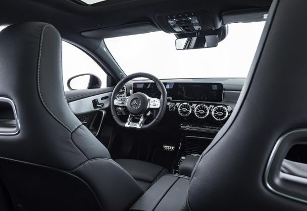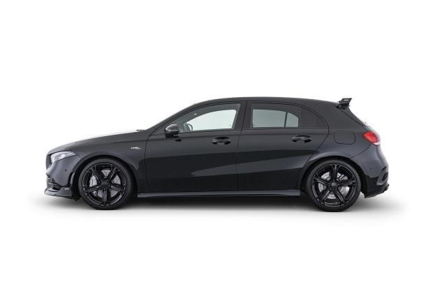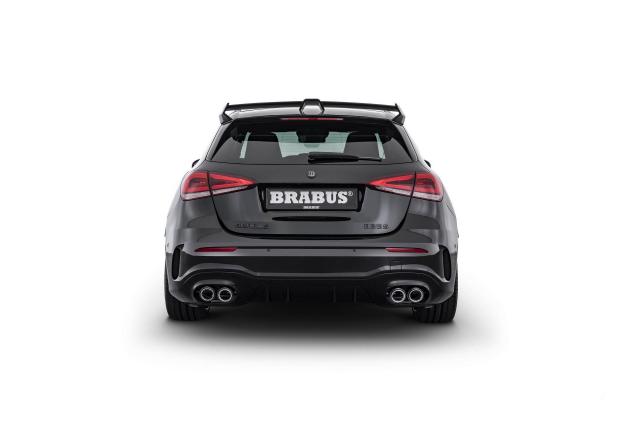 За какво става въпрос. Това е Brabus доработка на „топлия“ хеч Mercedes-AMG A35 4Matic, която почти приравнява возилото с топ модела А45. Двулитровото турбо под капака може да се похвали с 345 к.с. и 460 Нм момент или 43 к.с. и 60 Нм повече от стандартната версия.