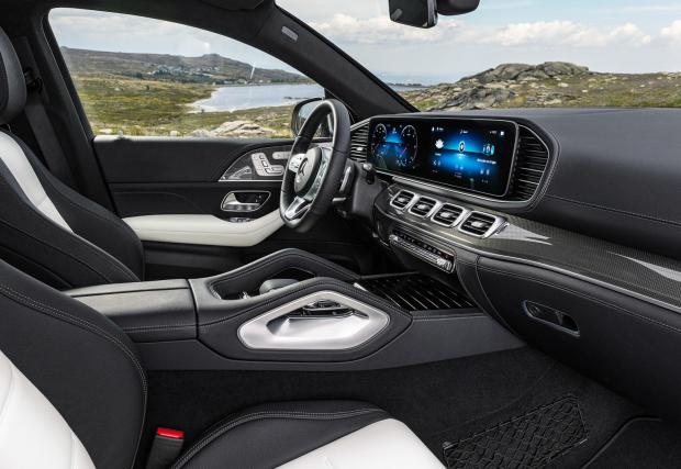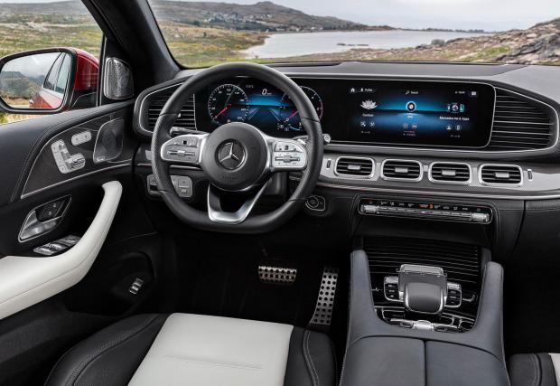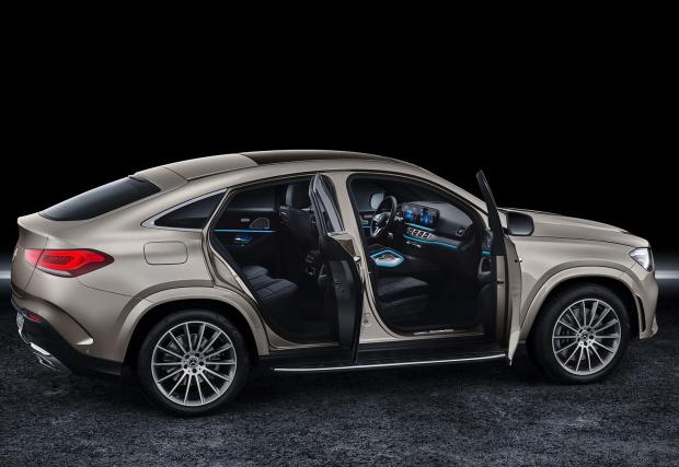 Честно казано, нищо на пръв поглед не ни шокира. Купе-джипката има познат дизайн в предната част, а задницата определено може да се нарече еволюция от предходното поколение на возилото. В кабината откриваме пълно сходство с вече дебютиралия GLE, като в това число включваме и двата масивни 12,3-инчови екрана, които образуват един общ голям дисплей.