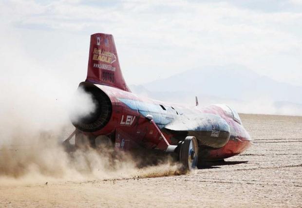 Малко повече за автомобила. Той не бе точно автомобил, а по-скоро изтребител Lockheed F-104 A Starfighter на колела. Машина, дълга 17 метра, тежаща 7 тона и задвижвана от турбореактивен мотор General Electric J-79-11B, генериращ около 52 000 конски сили.