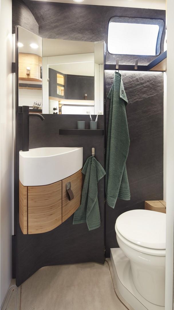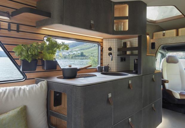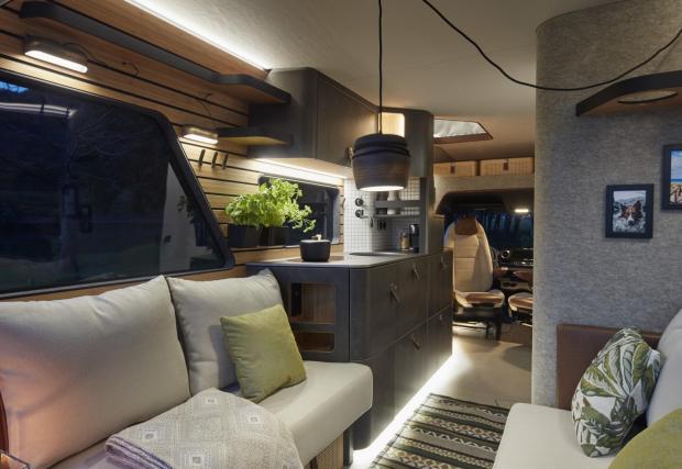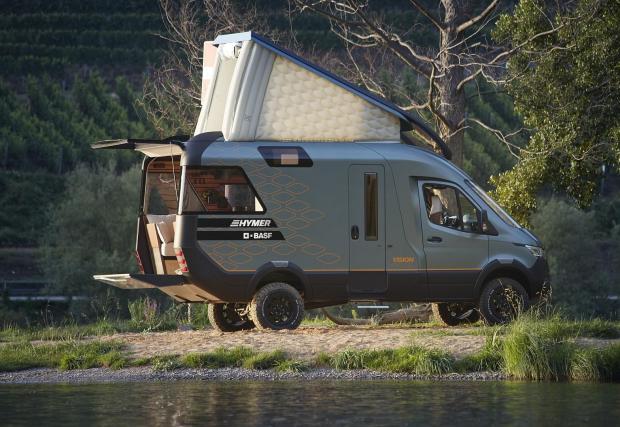 Hymer си партнира с BASF за изработката на машината, в която са използвани много полимерни материали, които иначе не виждаме често. Подборът им е позволил на фирмата да свали нагряването върху външните панели с до 20 градуса, което автоматически сваля температурата в кабината с поне 4 градуса.