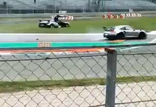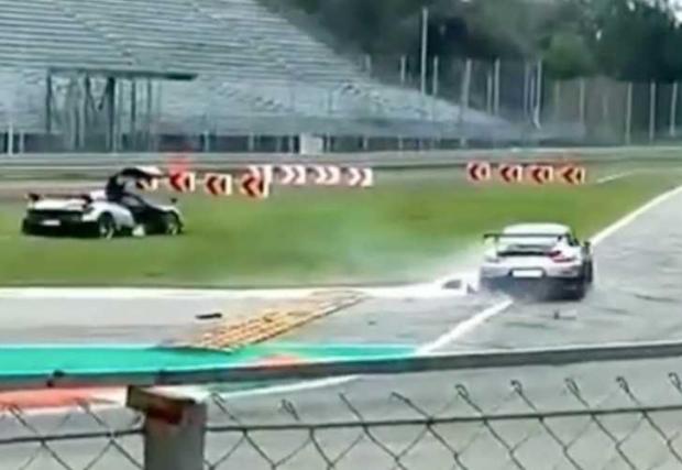 В Instagram се появи видео, в което Porsche 911 GT2 RS удря Pagani Huayra BC на пистата “Монца”. Инцидентът става в първия завой от трасето за Формула 1. В клипа се вижда как италианската суперкола влиза в завоя, когато от нищото се появява сребристо 911 GT2 RS, явно изпуснало точката за спиране, за да се вреже в дясната врата на Pagani-то. От удрата вратата на Huayra се отваря, а Porsche-то за момент е на две колела.
