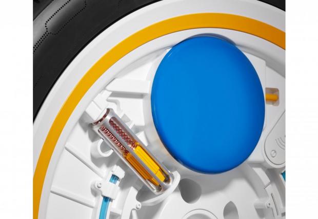 Концептуалната гума се казва Conti C.A.R.E, като абревиатурата идва от Connected, Autonomous, Reliable, Electrified. Най-същественото в нея обаче е системата PressureProof. Тя използва центробежната сила от въртенето на гумата и я праща към центробежна помпа, която върши своята работа. Излишният въздух се събира под налягане, така че гумата винаги да е идеално напомпана, дори колата да не е в движение. По този начин никога няма да карате със спаднали гуми и винаги поведението на колата и разходът на гориво ще бъдат еднакви, поне що се отнася до гумите.