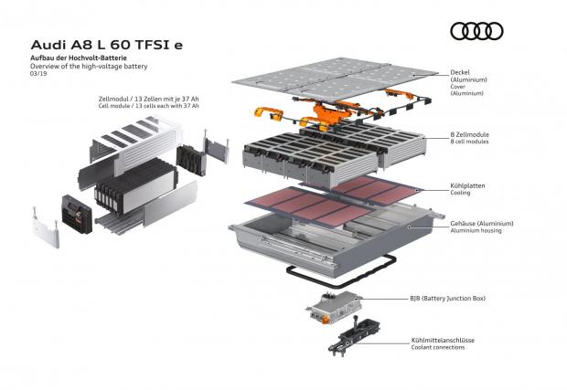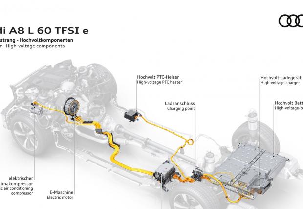 И при двете возила батериите са разположени под товарния под. Q7 използва 17,3-кВтч пакет, а при А8 откриваме малко по-малка 14,1-кВтч батерия. Електромоторът е разположен между двигателя с вътрешно горене и трансмисията. Пробегът с едно пълно зареждане на батерията е над 40 километра по цикъла WLTP и при двете машини.
