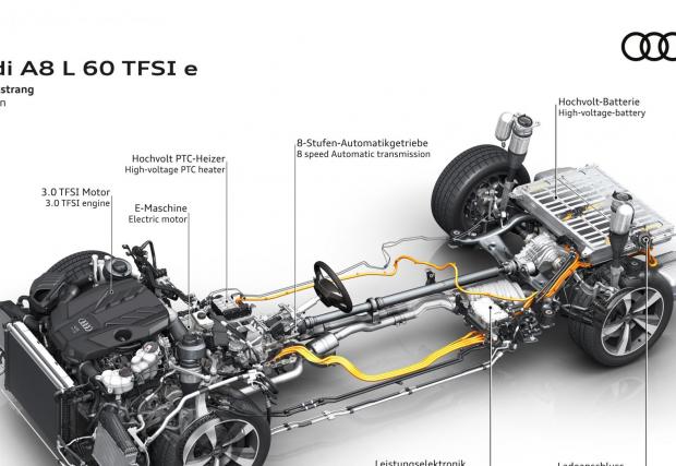 Пълните названия на двете коли са Q7 60 TFSIe и A8 60 TFSIe. Сложничко, но всъщност и двата модела използват идентична система с 3-литров V6 бензинов мотор, подпомаган от електромотор за системна тяга от 443 к.с. и 700 Нм въртящ момент. Ексклузивно ще се предлага 8-степенна автоматична скоростна кутия и Quattro задвижване на четирите колела.