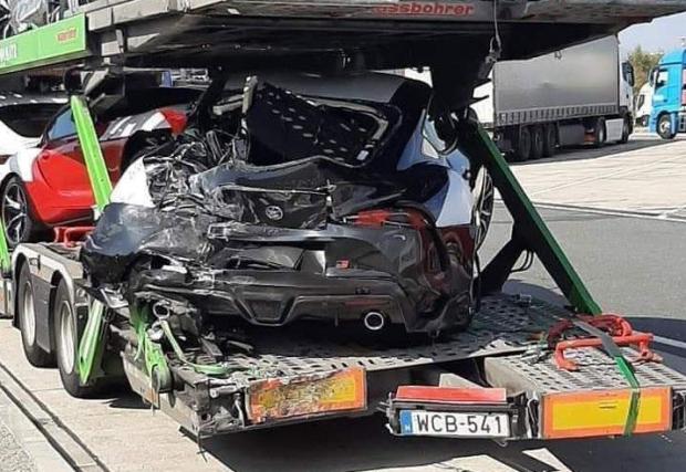 Случката се е разиграла някъде в Унгария, съседката на Австрия, на родното място на новата Supra, която се прави в Грац заедно с BMW Z4. Снимките идват от Фейсбук страницата ‘Houston Underground Races’, а по информация на Carthrottle, движещ се зад автовоза друг камион се е натресъл във въпросния.