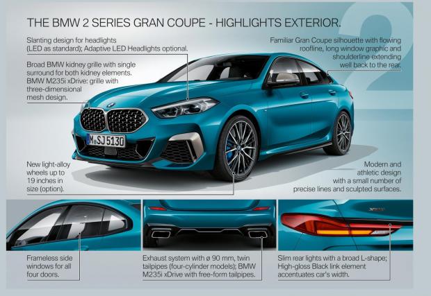 Добрата новина е, че бъбреците са далеч по-малки от тези на X7 и Серия 7, и особено от тези на Concept 4. Истината е, че чисто новото и първо по рода си 2-Series Gran Coupe има добри пропорции и размери – дълго е 4526 мм, широко е 1800 мм и е високо 1 420 мм. Изглежда добре, но има какво да ви разочарова.