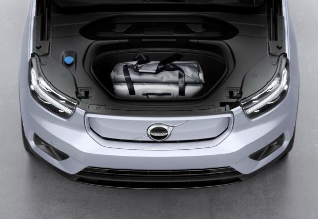 В сравнение с бензиновите XC40 колата е с по-малък клиренс. Багажникът също е малко по-малък, но пък липсата на мотор под предния капак позволява създаването на малък багажник и отпред.