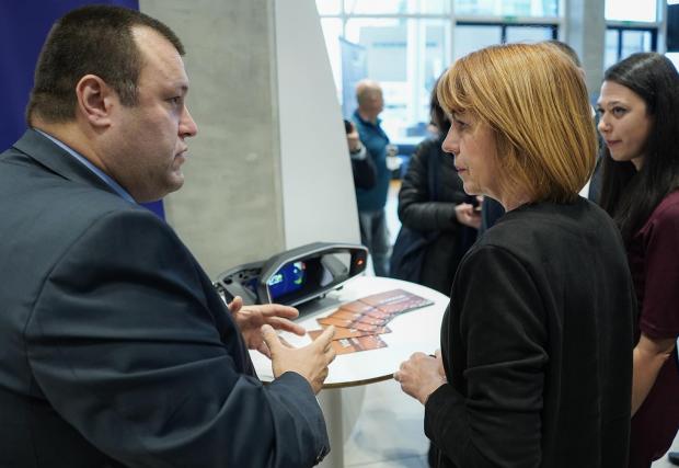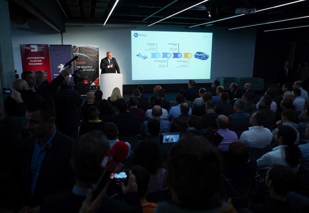 3D клъстерът беше представен на специално събитие, на което присъстваха премиерът и кметът на София. Снимките на г-н Борисов, който се опитва да се побере в компактното Peugeot 208, вече обиколиха Facebook, но най-същественото в колата не беше премиерът, а сложната технология от Visteon България.