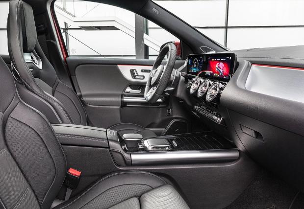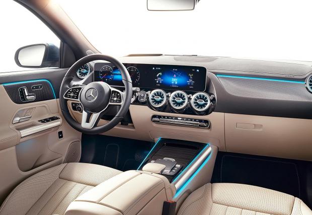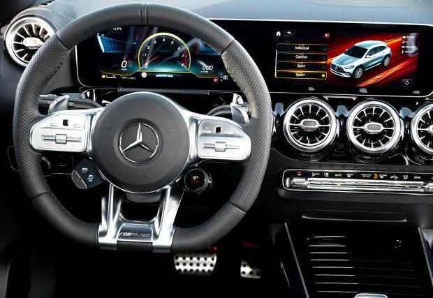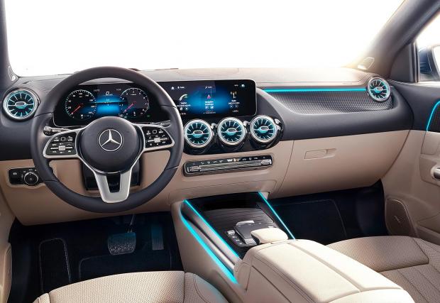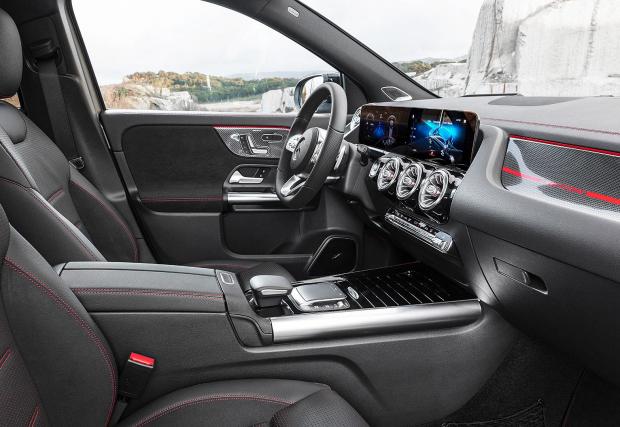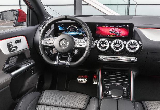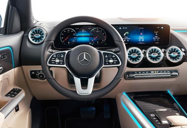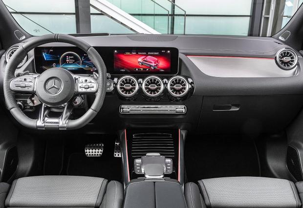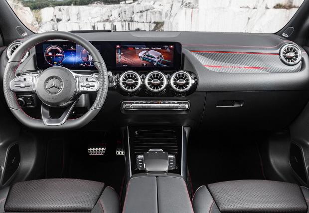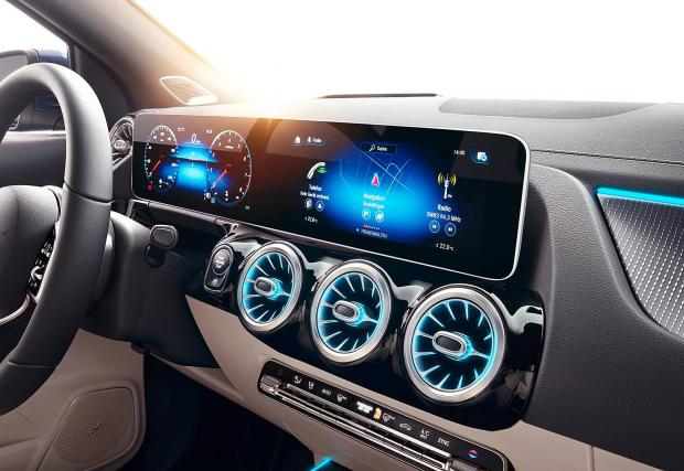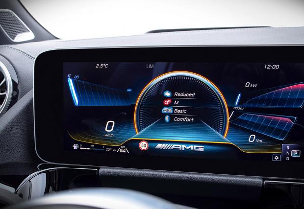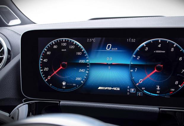 Таблото е точно като на A-Class и всички актуални модели на Merc - два големи сдвоени екрана в топ версиите, един за инфотейнмънт системата и един за информация за шофьора. Под централния екран пък се намират три кръгли вентилационни отвора, а още по-надолу има няколко физически бутона за управление на различни функции.